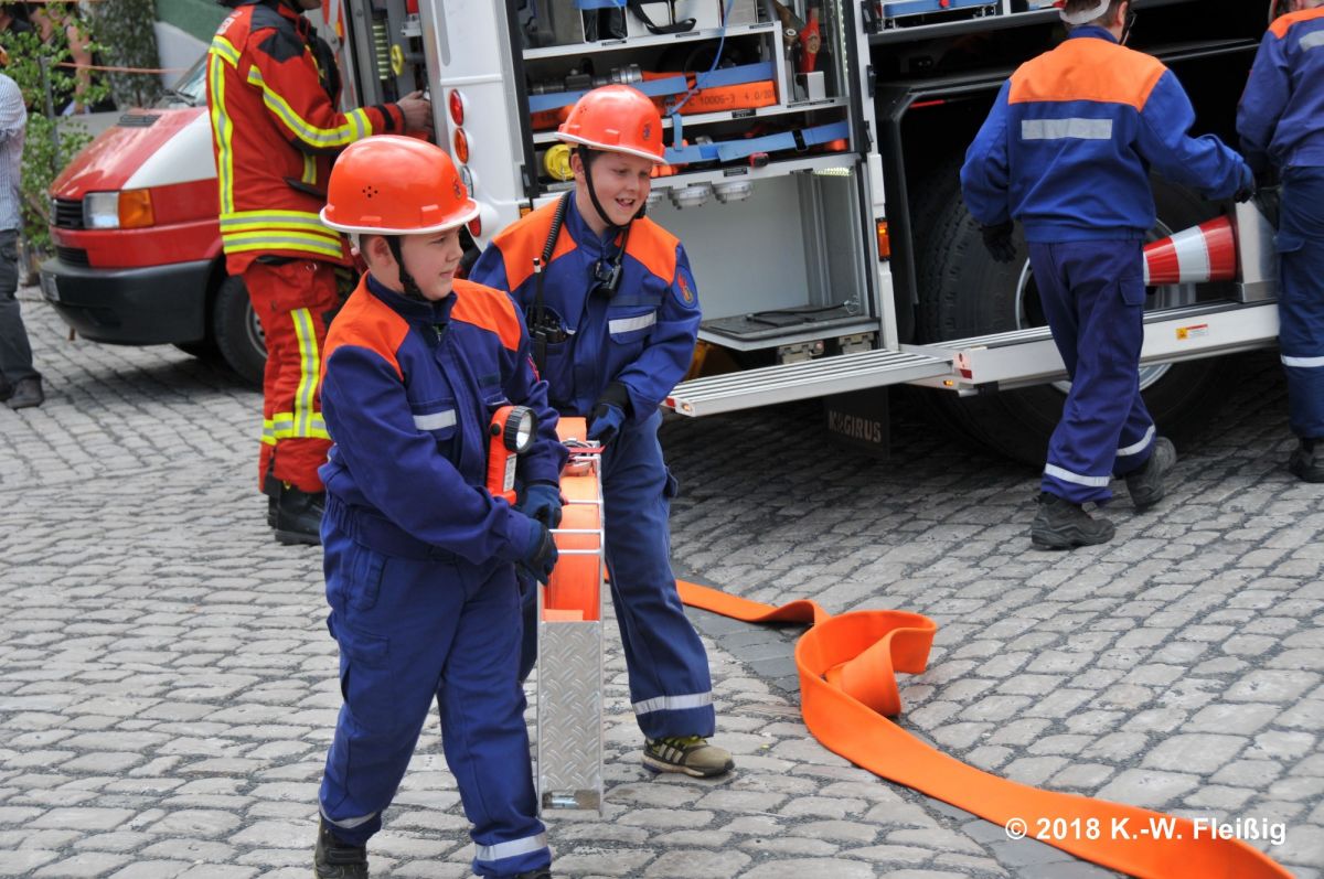 Der 2. Teil der Übung zeigt den heutigen Alarmierungsweg über den sogenannten "Piepser". Nach Alarmierung durch die Rettungsleitstelle zeigt die Eisfelder Jugendfeuerwehr den heutigen Löschangriff mit unserem Hilfeleistungslöschfahrzeug.