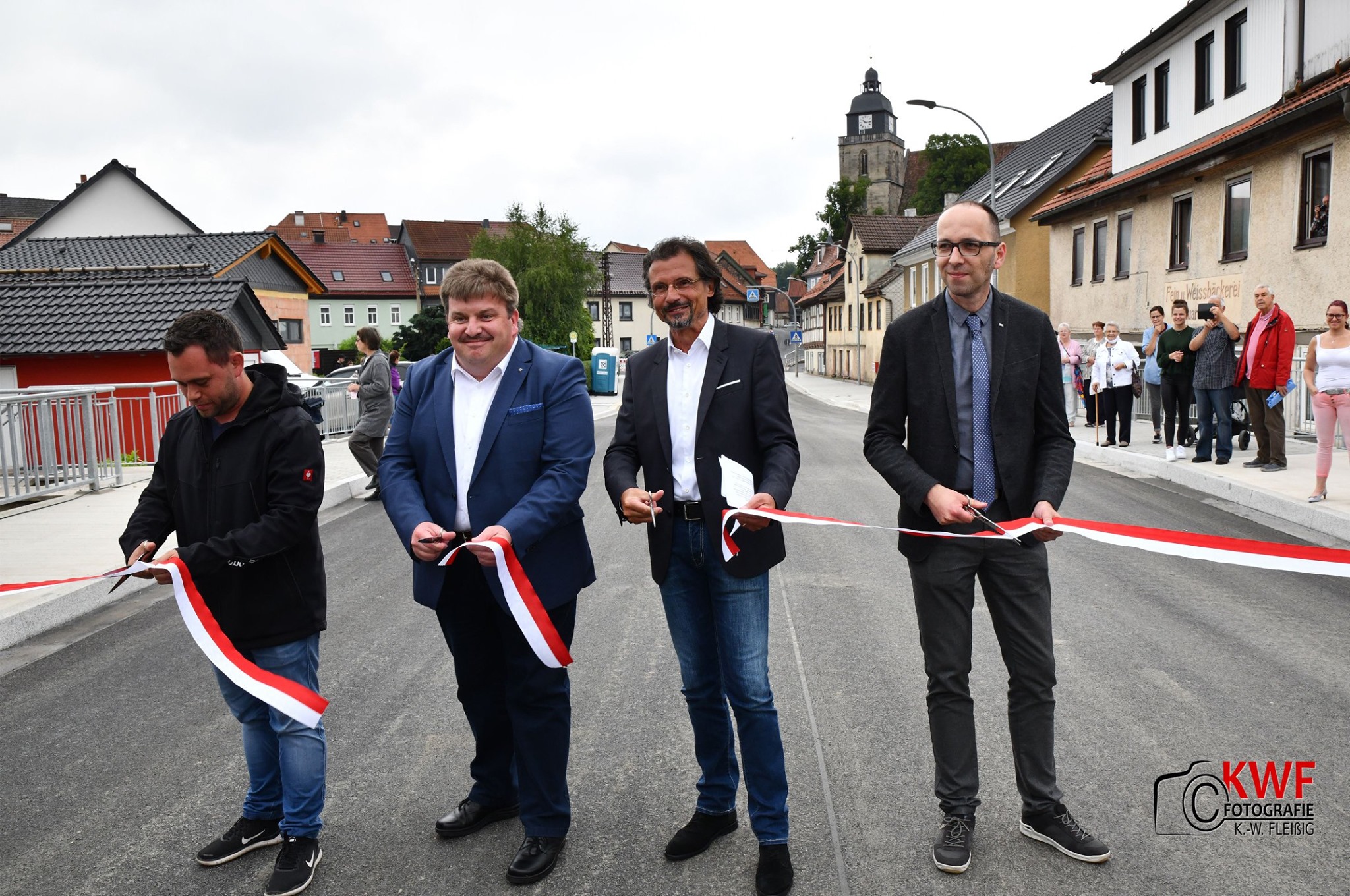 Nach über einem Jahr Bauzeit und der damit verbundenen Vollsperrung konnte die im Rahmen des Hochwasserschutz-Projektes komplett neu gebaute Brücke für den Verkehr freigegeben werden. Die Brücke wurde ca. 1m höher erbaut, um der Werra einen größeren Durchfluss zu ermöglichen. Somit ist auch in diesem Bereich die Werra für ein HQ100 geschützt. Die Wiedereröffnung ist auch gut für die Kameraden. Sowohl der Weg zum Gerätehaus im Alten Graben, als auch der Weg Richtung Coburg und Sonneberg beim Ausrücken zum Einsatz müssen nicht mehr über Umleitungen erfolgen.