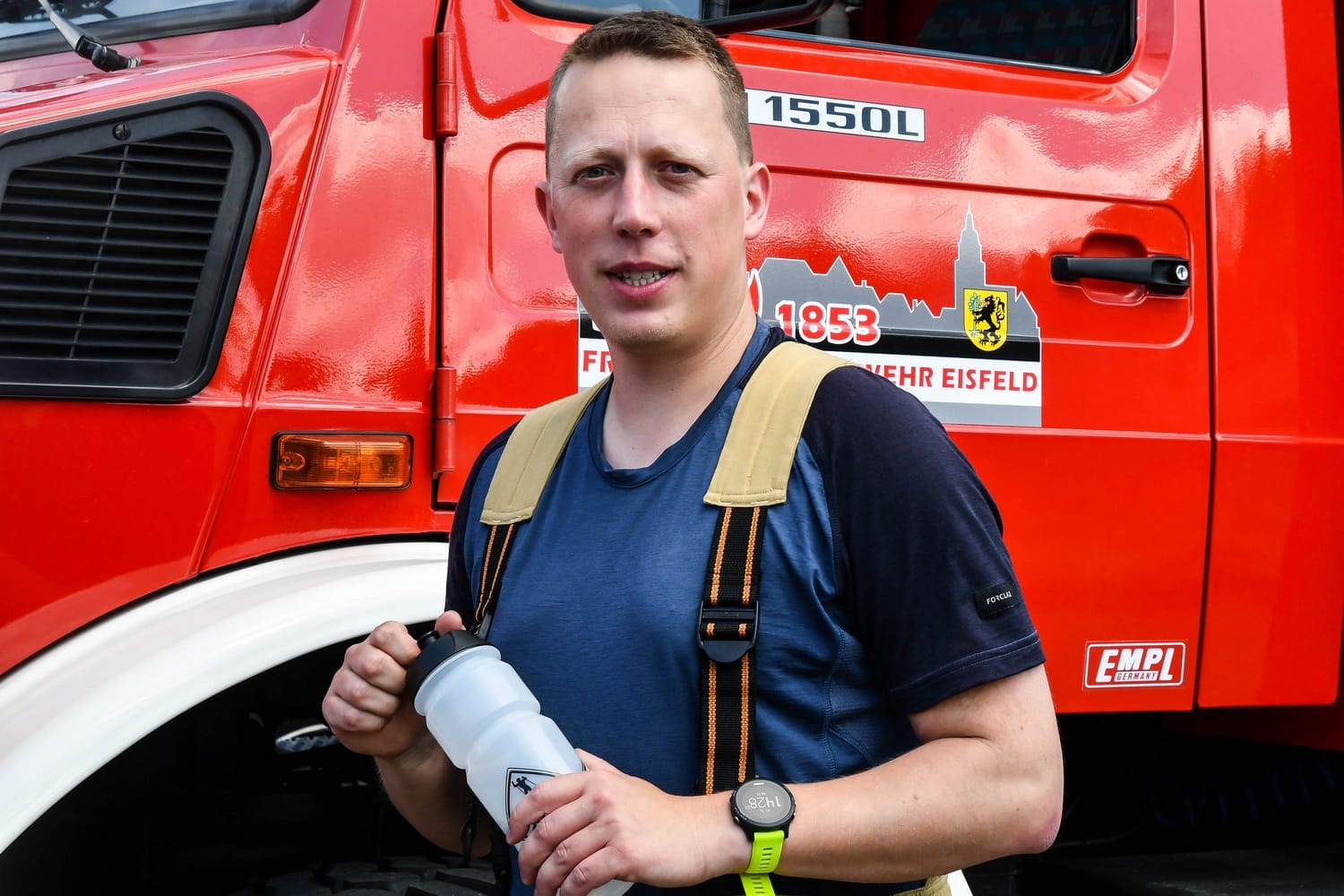 Er und 11 weitere Feuerwehrkameraden aus der ganzen Republik laufen (rennen) im Staffellauf und in voller Montur den ehemaligen Grenzstreifen (Grünes Band) entlang. Ziel ist es die 1200km lange Strecke in ca. 10 Tagen zu bewältigen. Am Sonntag (10.06.) war eine der Staffelstabübergaben an Frank bei uns in Eisfeld an der AGIP Tankstelle, die ja bekanntlich direkt am ehemligen Grenzübergang liegt. Als Staffelstab dient ein Pressluftatmer, der das Gewicht und damit die enorme Leistung der Beteiligten noch einmal erhöht. Zur Unterstützung beim Heimspiel kamen viele Kameradinnen und Kameraden unserer Wehr und vom Verein. Eine tolle Aktion - Hochachtung und Respekt für alle Beteiligten. Wer die Truppe und deren Anliegen unterstützen will, kann gerne an die Deutsche Krebshilfe spenden. Dafür machen die Jungs es ja.
