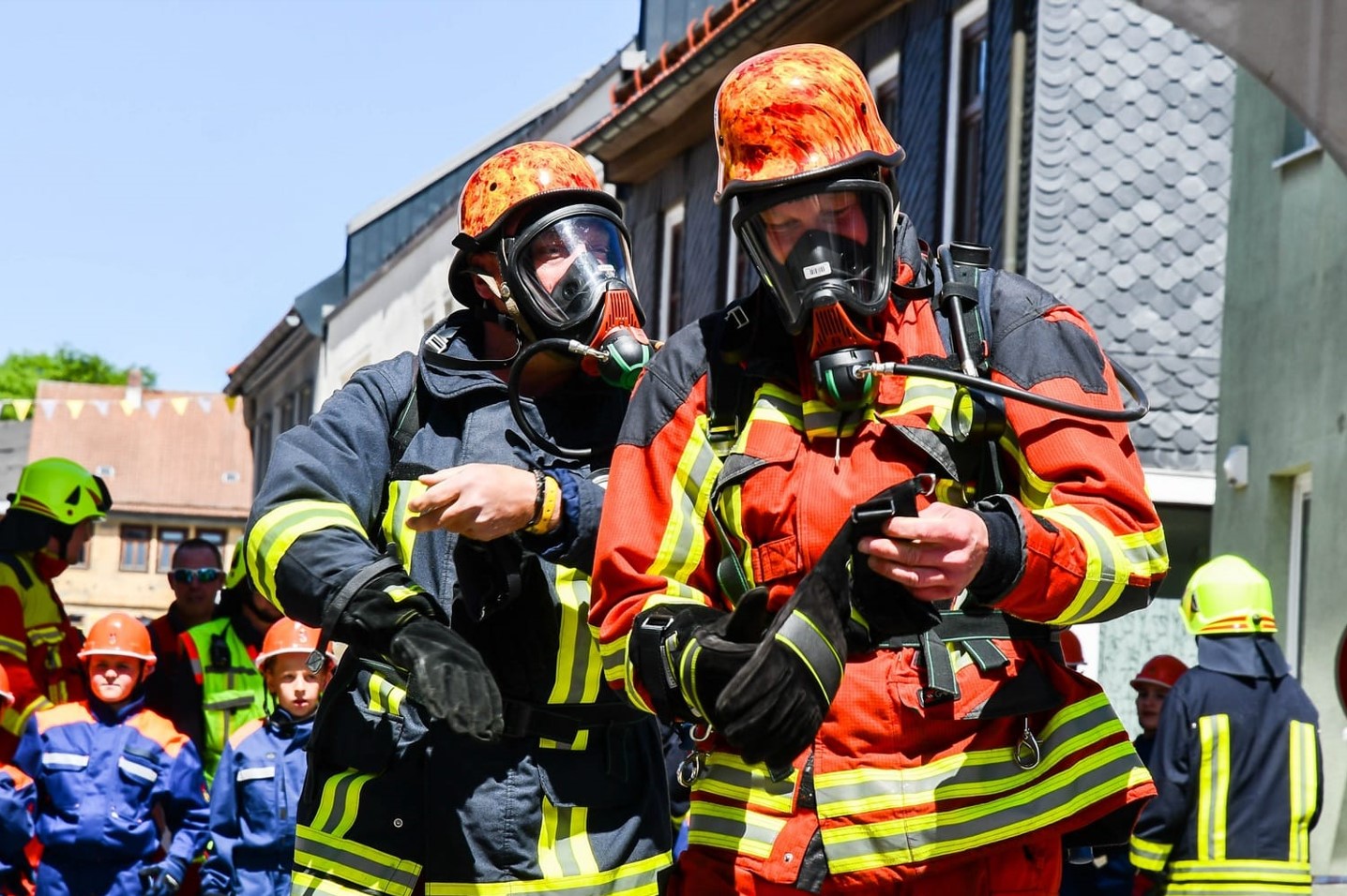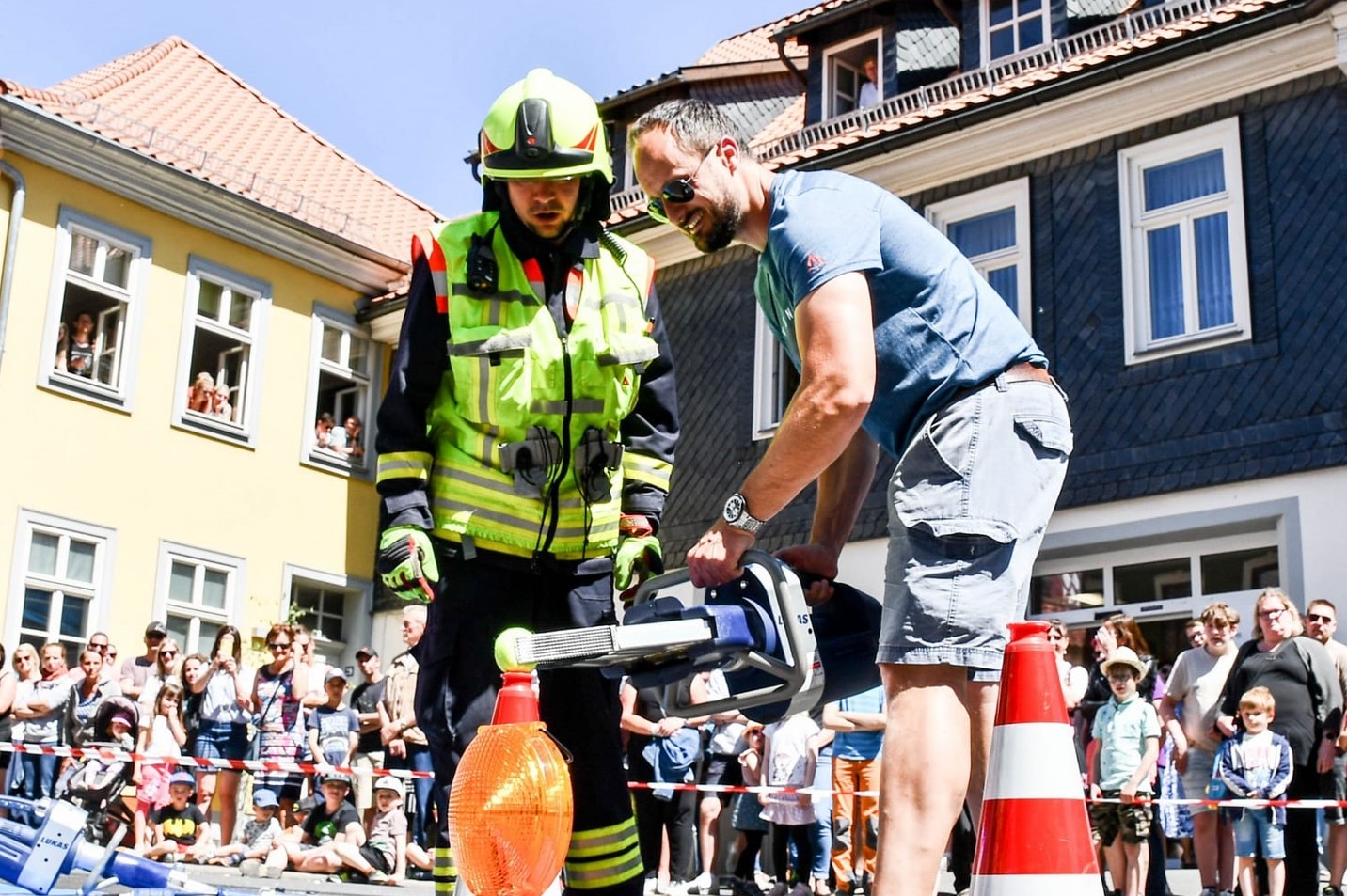 Die Kameradinnen und Kameraden der Feuerwehr Eisfeld haben sich traditionell wieder mit am Eisfelder Kuhschwanzfest beteiligt. Am Pfingst-Dienstag fand um 14 Uhr wieder unserer Hauptübung anlässlich des Eisfelder Kuhschwanzfestes statt. Zur gewohnten Zeit, aber diesmal an einem anderen Ort (Kirchplatz beim Stadttor) zeigten wir unseren Gästen welche Aufgaben die Feuerwehr Eisfeld hat und mit welcher Technik wir diese bewältigen. Unterstützt wurden wir dabei natürlich auch von unserer Jugendfeuerwehr.