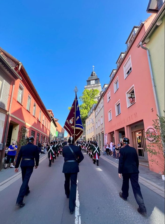 Wir beteilgten uns auch am großen Festumzug. Hier unterstützen uns auch Kameraden aus den anderen Eisfelder Feuererwehren.