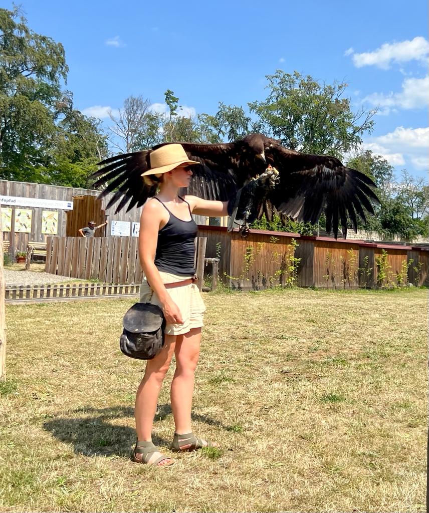 Dieses war der erste Streich und der zweite folgt sogleich. Aufstehen, frühstücken, fertig machen! Unser heutiges Ziel sollte die Burg Greifenstein bei Bad Blankenburg sein. Die Burg und ihre imposanten Anlagen wurden erkundet bevor das nächste Highlight auf uns wartete, eine Flugshow der Falknerei. Von der kleinen Eule bis zum großen Weißkopfseeadler, die Vögel flogen knapp über unsere Köpfe hinweg. Die Flügelschläge sorgten für, an diesem heißen Tag durchaus willkommene, Luftzüge. Eine aufsehenerregende Show mit waghalsigen Flugmanövern konnte bestaunt werden.