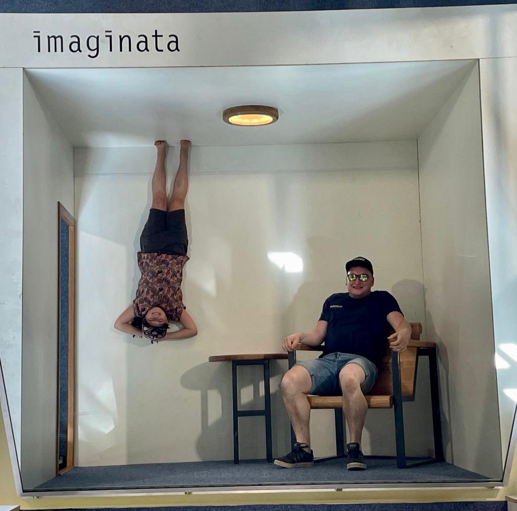 Jeder bekam große Augen, als sich die Wippe auf der Seite mit einer Person senkt, obwohl auf der anderen Seite fünf Personen stehen oder wenn die Murmel von allein bergauf zu rollen scheint. Unvergessen und aufregend wird für einige sicherlich auch der Blick in den unendlich tiefen Aufzugsschacht bleiben, der nicht mal einen Meter tief ist. Was so ein paar Spiegel doch bewirken können.