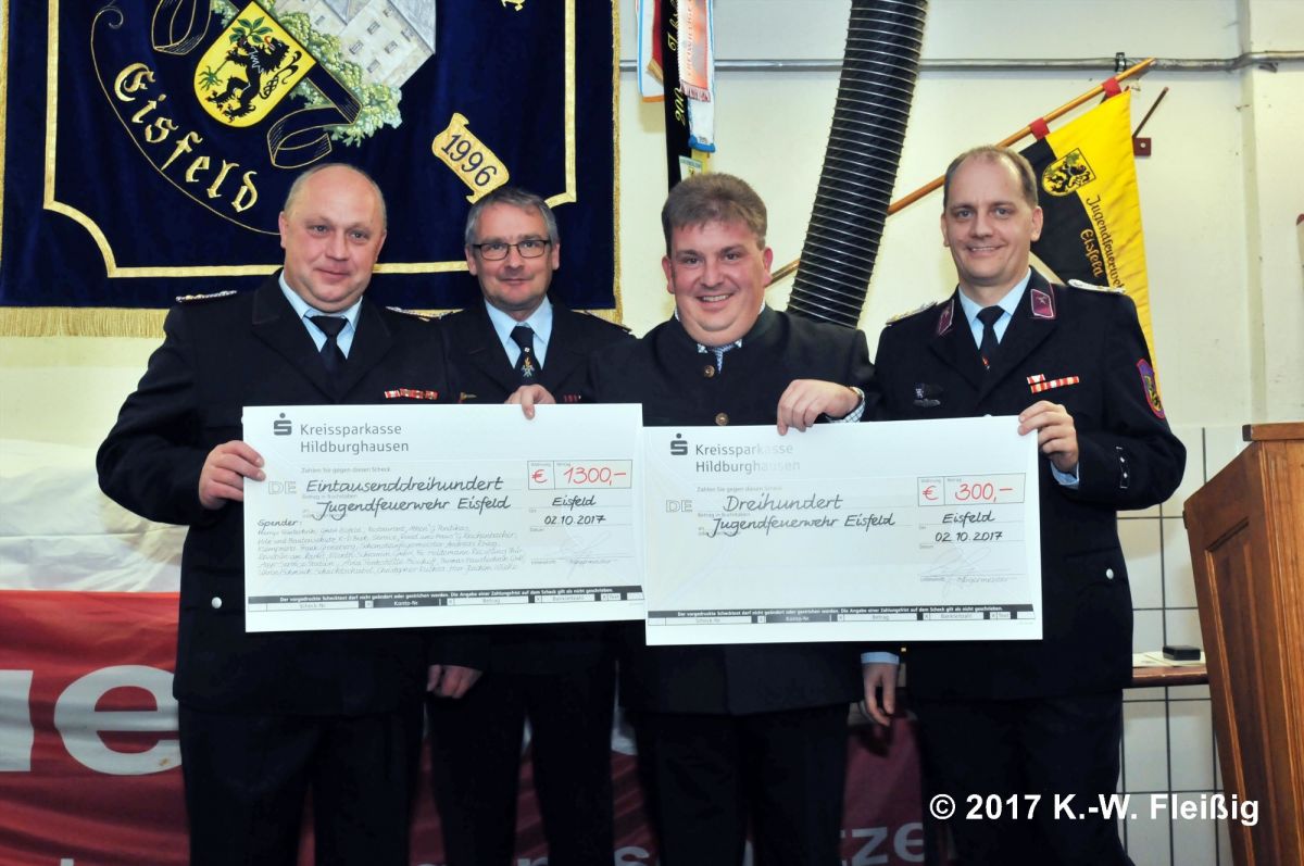 Doch auch Unternehmungen und Freizeitaktivitäten spielen eine große Rolle in der Jugendfeuerwehr. Neben Zeltlager und 24-Stunden-Berufsfeuerwehrtag konnten in den letzten Jahren ebenso Fahrten und Besichtigungen zur Flughafenfeuerwehr, der Leitstelle sowie Berufsfeuerwehren in Thüringen aber auch anderen Bundesländern durchgeführt werden. Neben Vertretern anderer Feuerwehren und Verbänden gratulierte musikalisch auch der Spielmannszug der Eisfelder Feuerwehr und man ließ den gemeinsamen Abend im Gerätehaus ausklingen.