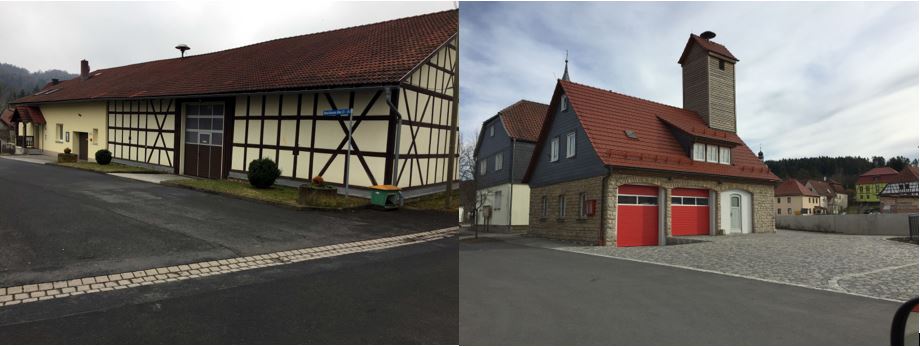 Die aktive Mannschaft der bisherigen Ortswehr Harras 2016 vor ihrer neuen Fahrzeughalle